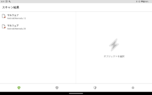 Teclast T70では検出されました。上記のように「Dr.Web Light」アプリをインストールしパターンを最新に更新した後フルスキャンしたら発見されました。