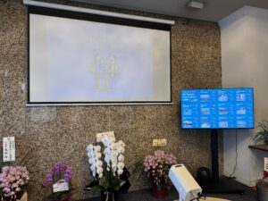 2階入口正面にはプロジェクターが設置され、フィールドデザイン様が制作された、長野県の魅力を伝える観光動画が投影されています。